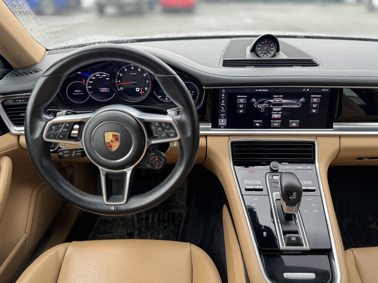 The vehicle is in excellent condition and has been inspected by our certified mechanics. The Panamera is well equipped, featuring a beautiful large infotainment touchscreen, radio, Bluetooth connectivity, 360-degree camera, parking lane sensors, blind spot monitoring, multi-zone climate control, heated seats, large sunroof, beautiful brown interior, USB-C port, 12V outlet, ample storage space, power package, and much more.
