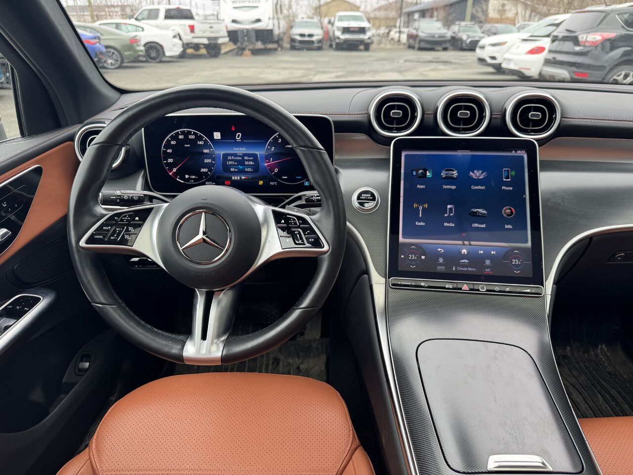 Magnificent 2023 Mercedes-Benz GLC 300 with 96,000 km on the odometer. The vehicle has never been in an accident and has been inspected by our certified mechanics. The GLC 300 is fully equipped, featuring a large and beautiful infotainment touchscreen, radio, Bluetooth connectivity, Apple CarPlay/Android Auto, 360-degree camera, blind-spot monitoring, parking sensors, GPS navigation, voice control, cruise control, multi-zone climate control, heated seats, a very large panoramic sunroof, a beautiful brown interior, USB-C port, 12V outlet, ample storage space, power group, and much more.