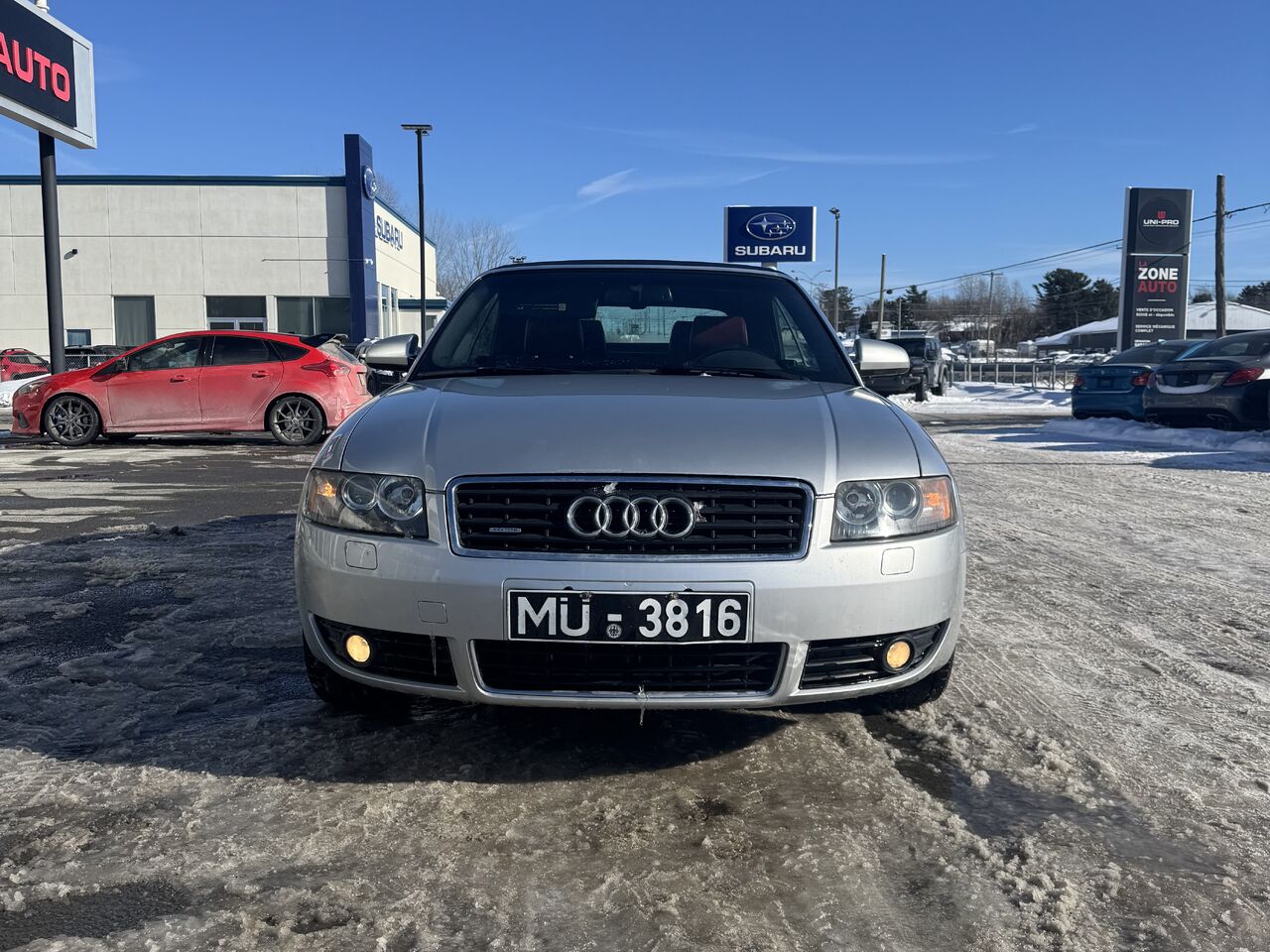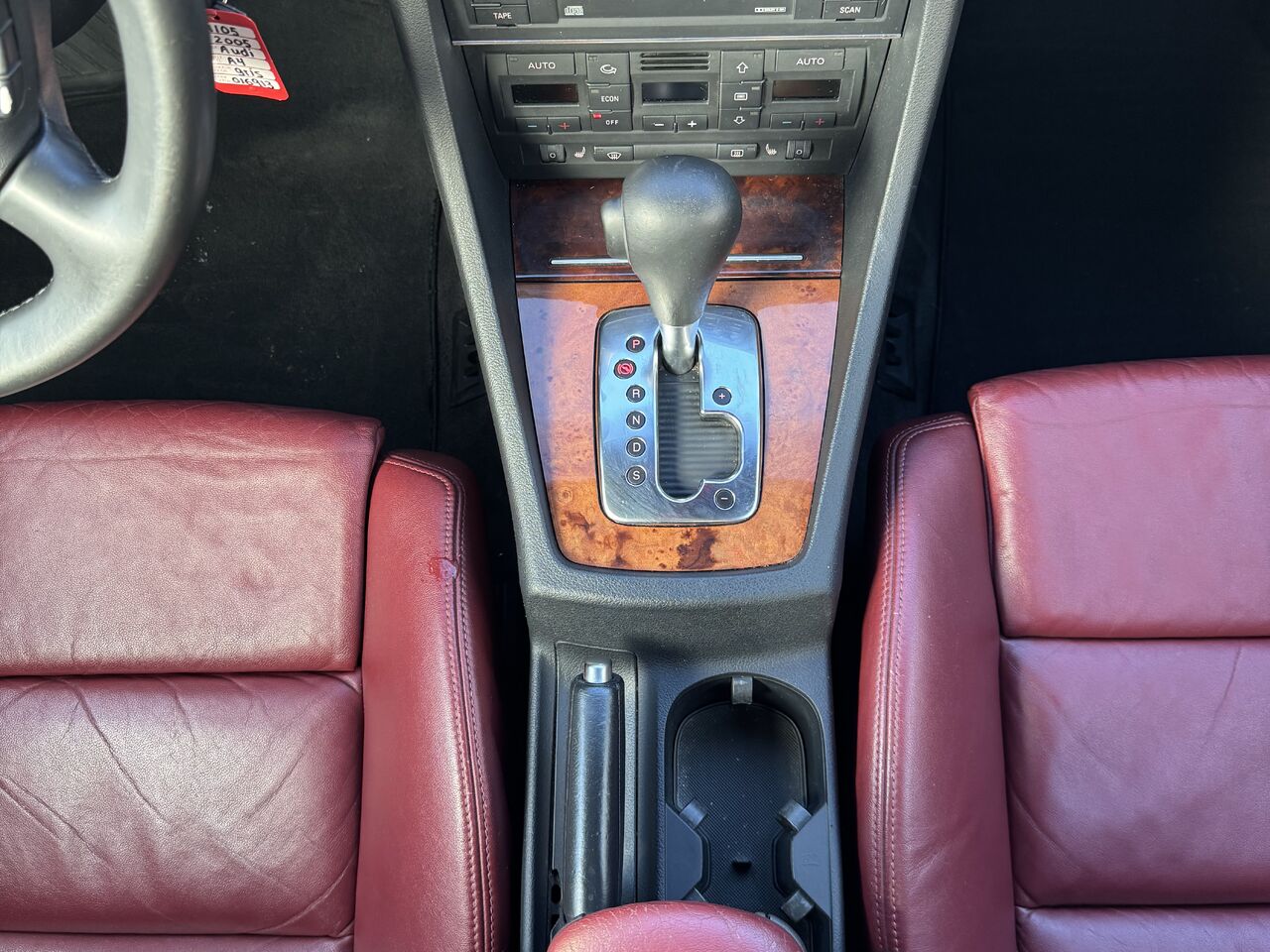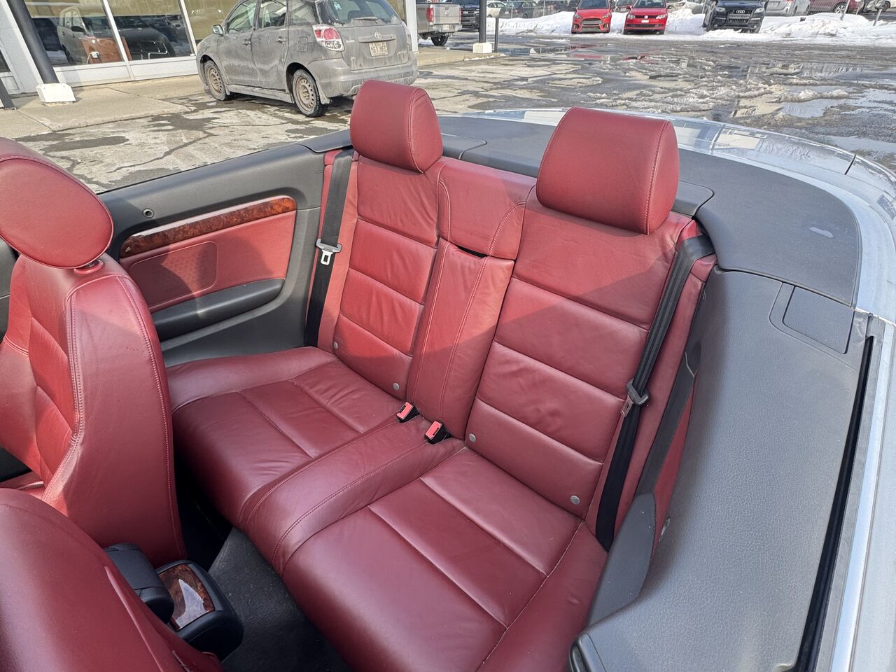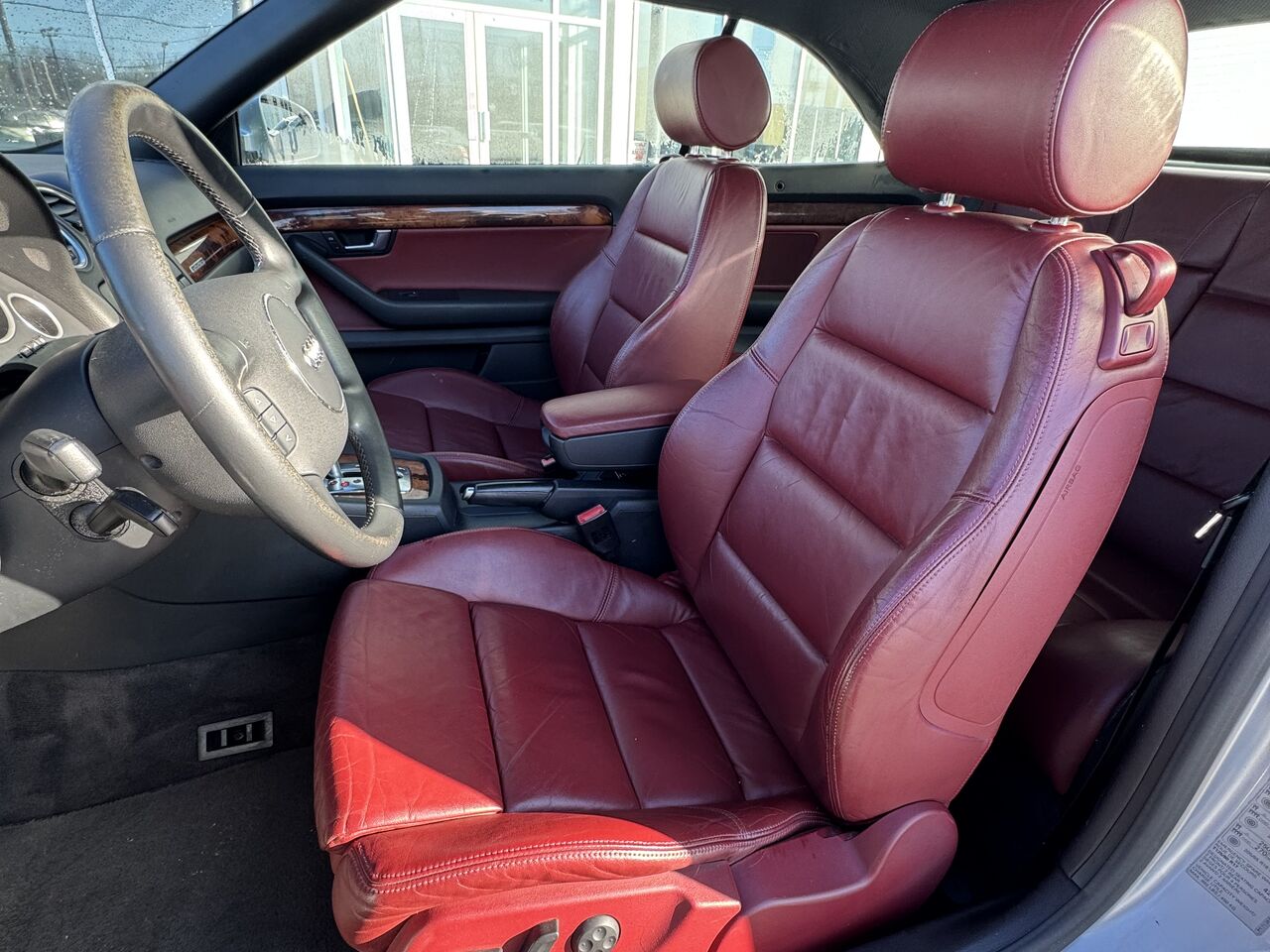 This A4 is fully equipped with: radio, CD player, cassette player, dual-zone climate control, convertible top, 12V outlet, storage space, steering wheel controls, cruise control, beautiful red interior, power group, and much more.