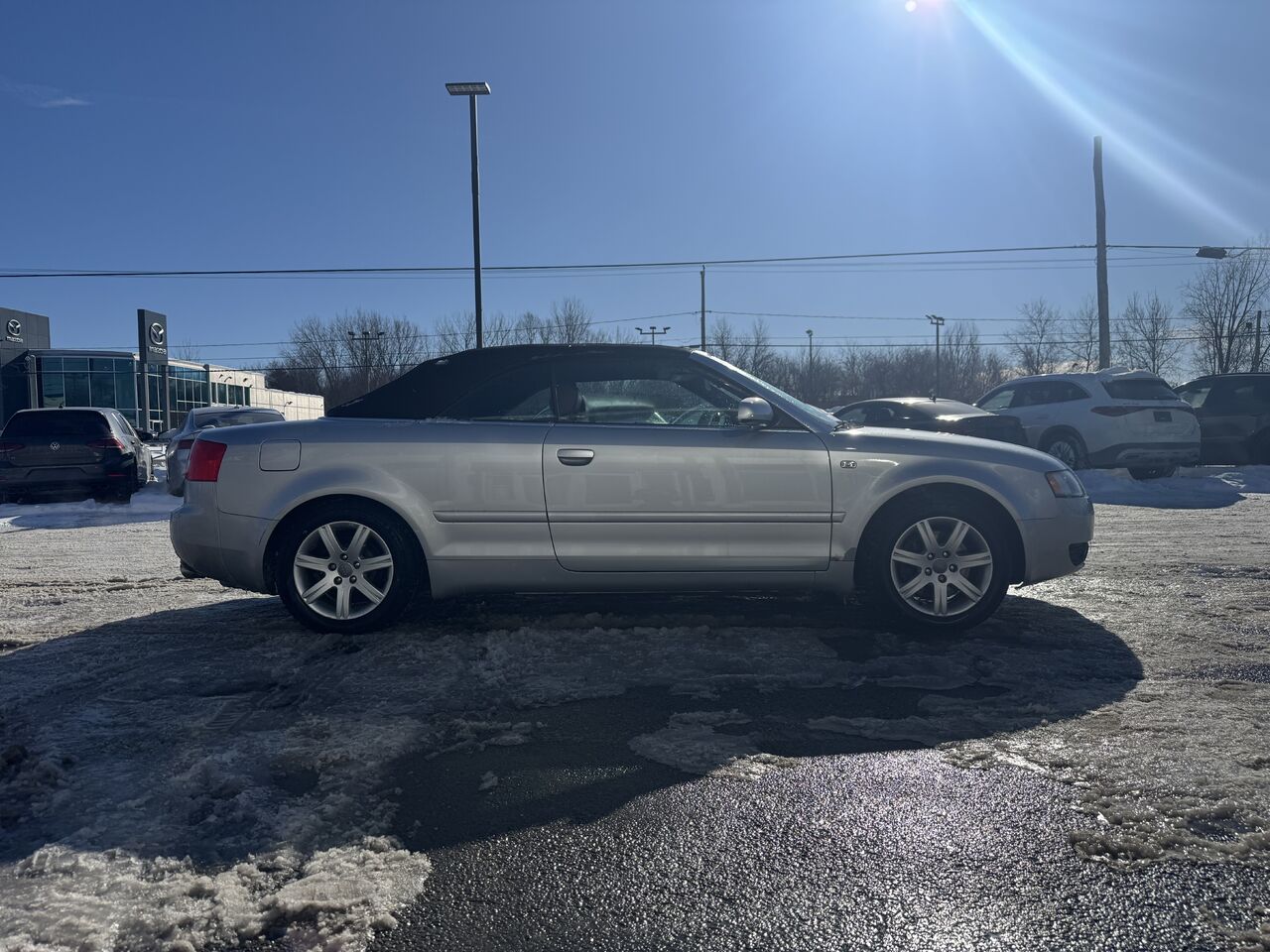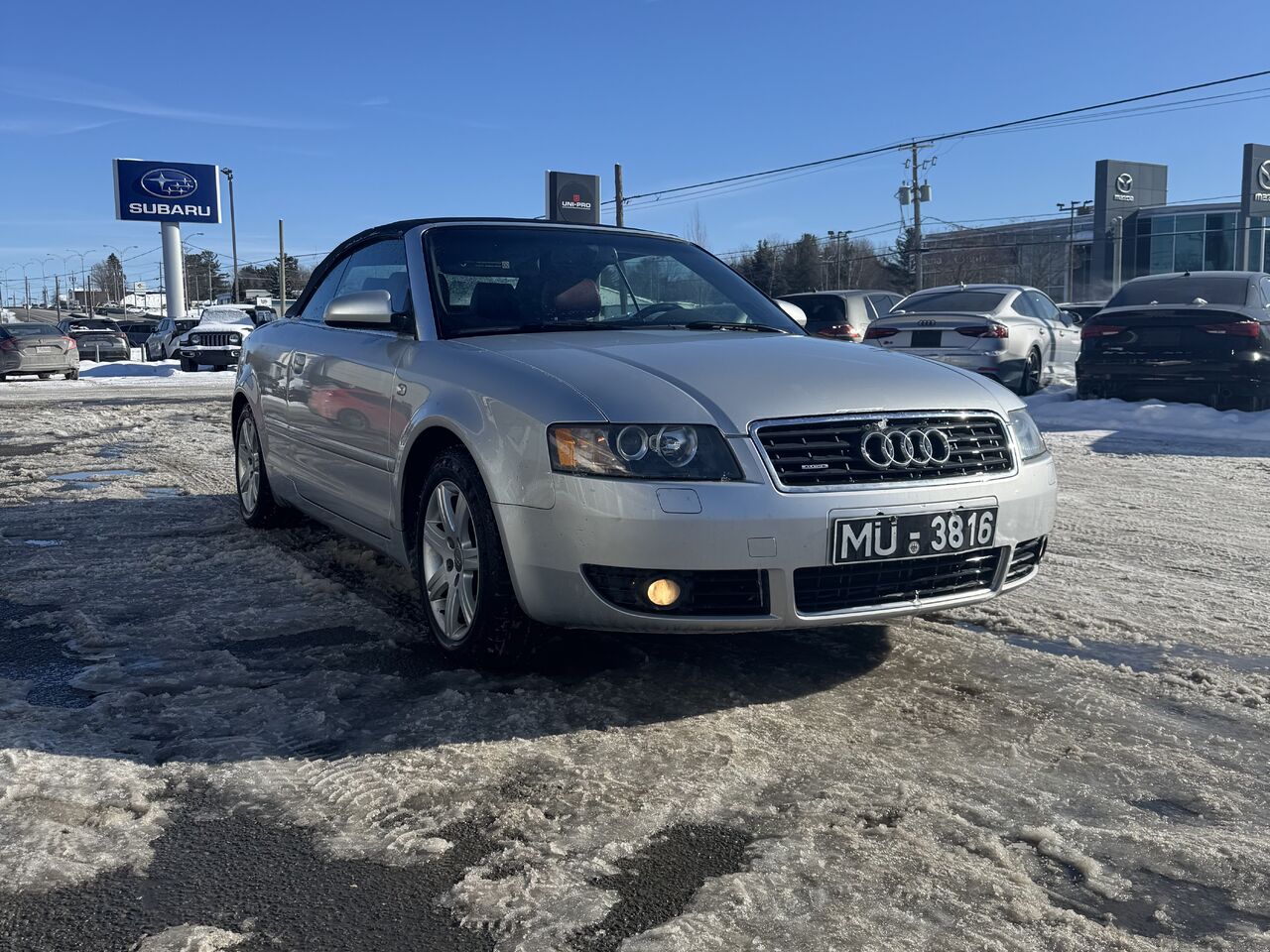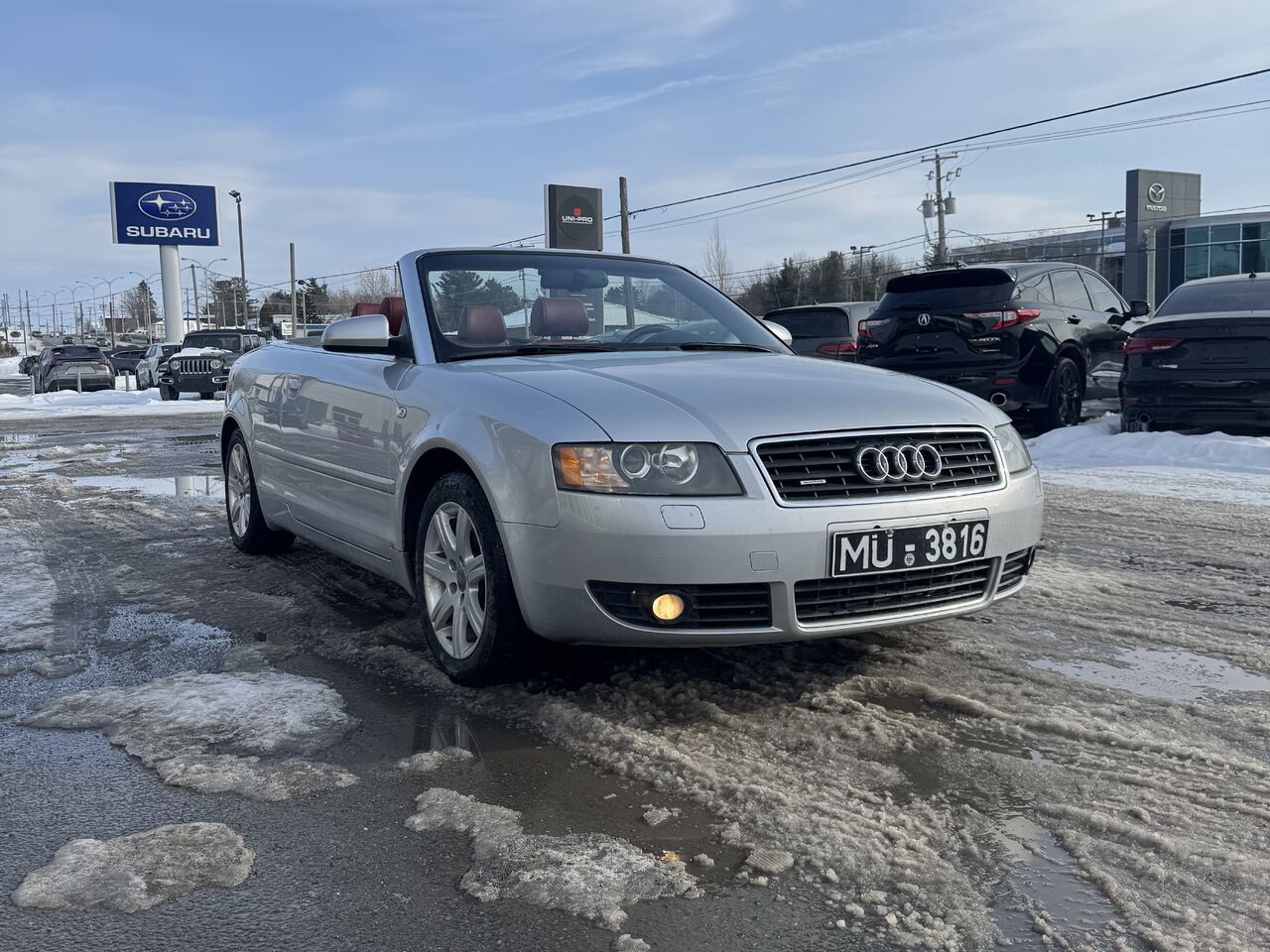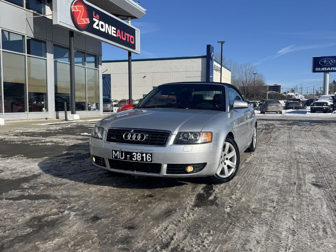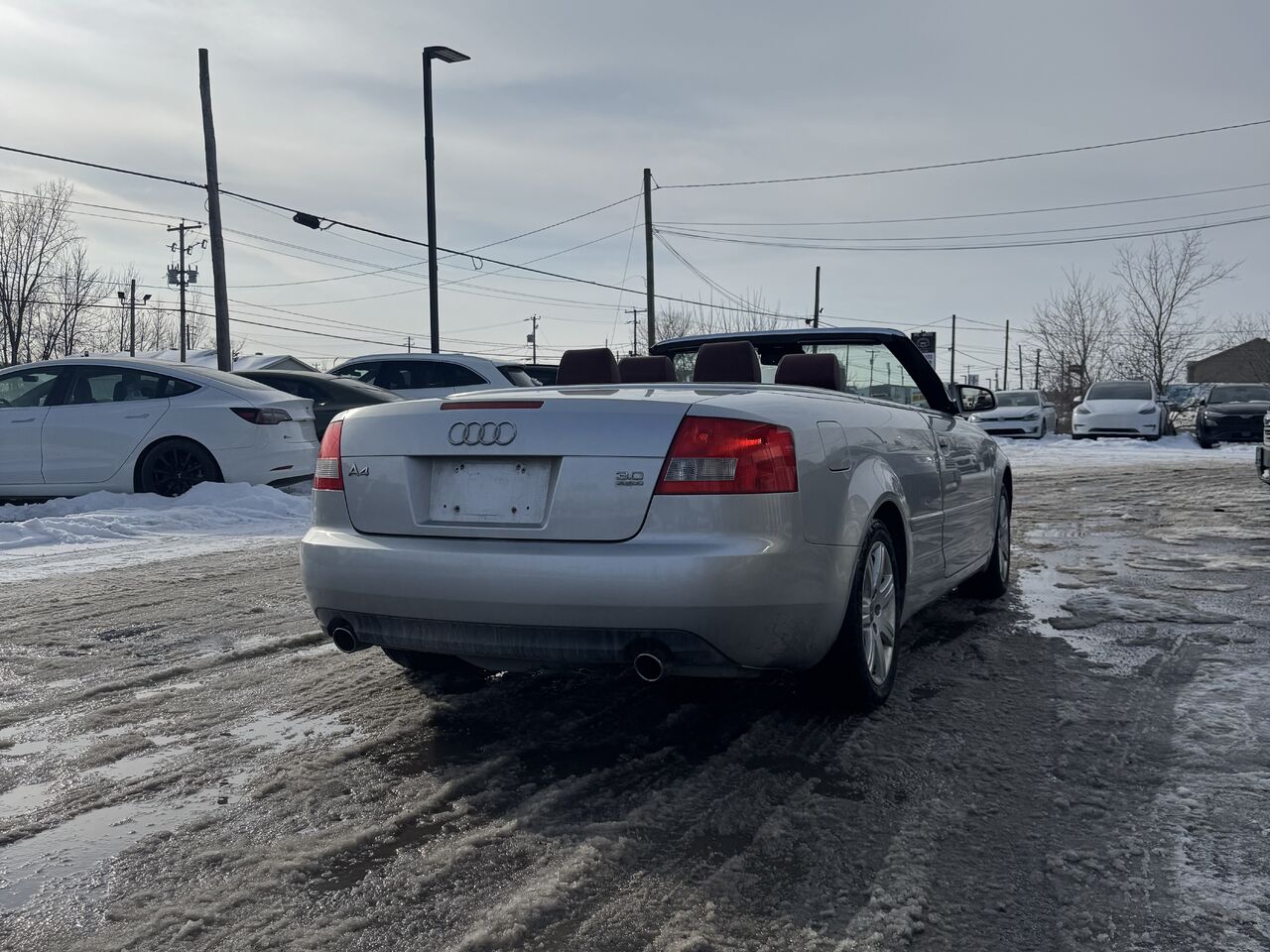 This A4 is fully equipped with: radio, CD player, cassette player, dual-zone climate control, convertible top, 12V outlet, storage space, steering wheel controls, cruise control, beautiful red interior, power group, and much more.