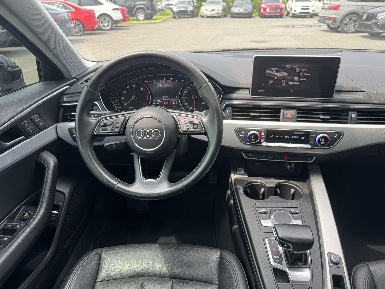 Superb 2018 Audi A4 Sedan with 101,400 km on the odometer. The vehicle is in excellent condition and has been inspected by our certified mechanics. The A4 is well equipped with an infotainment screen, radio, Bluetooth connectivity, GPS navigation, rearview camera, blind spot monitor, parking line assist, voice control, cruise control, heated seats, sunroof, multi-zone climate control, USB port, power group, and much more.
