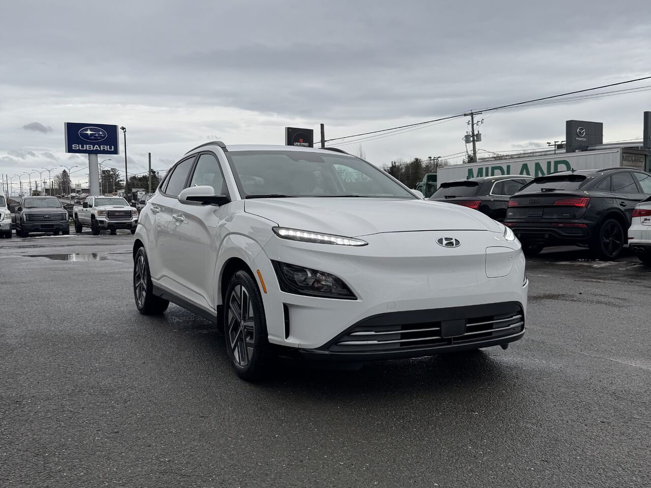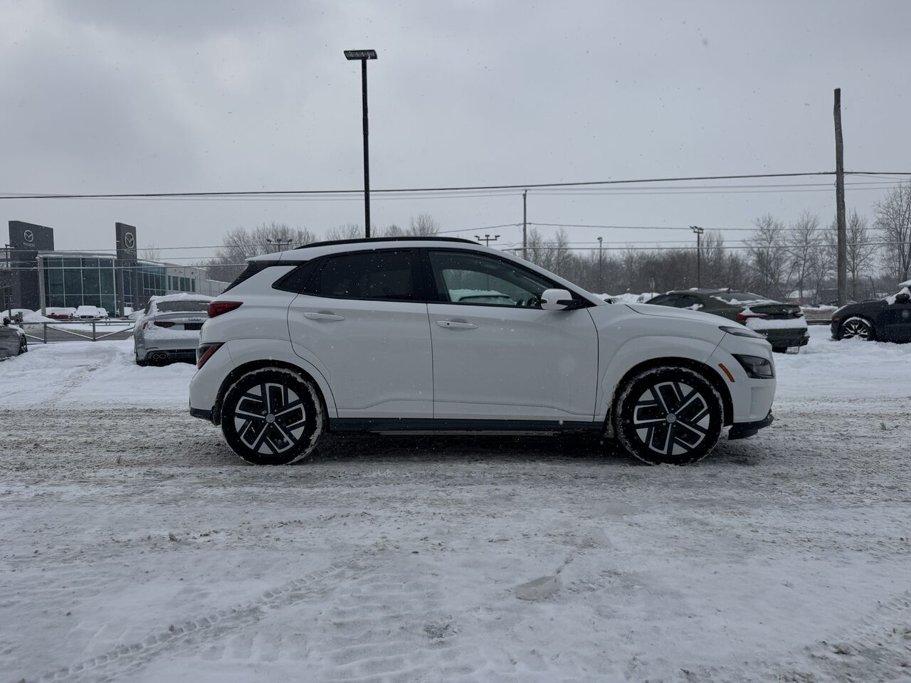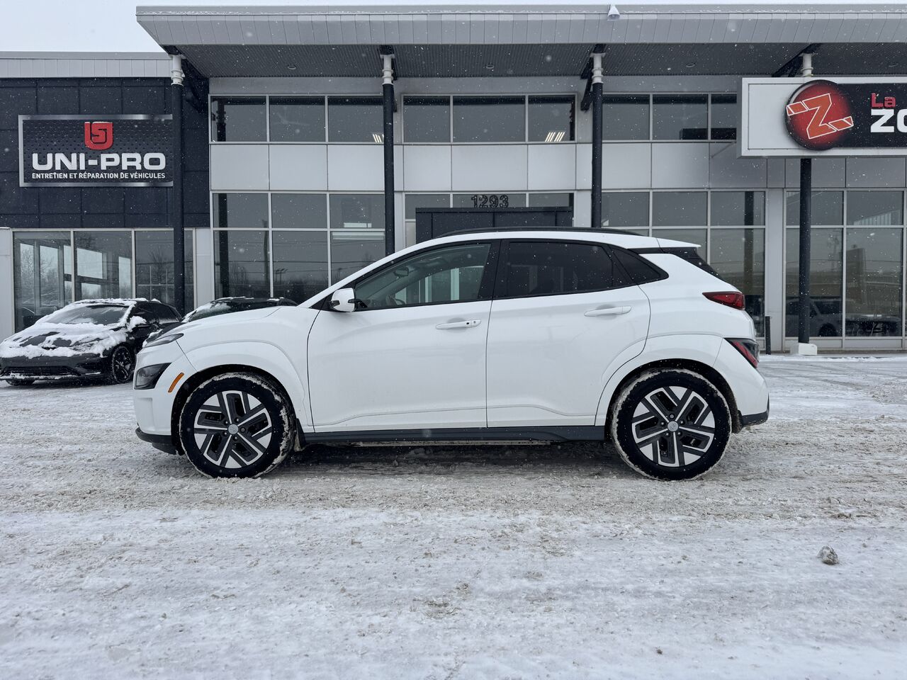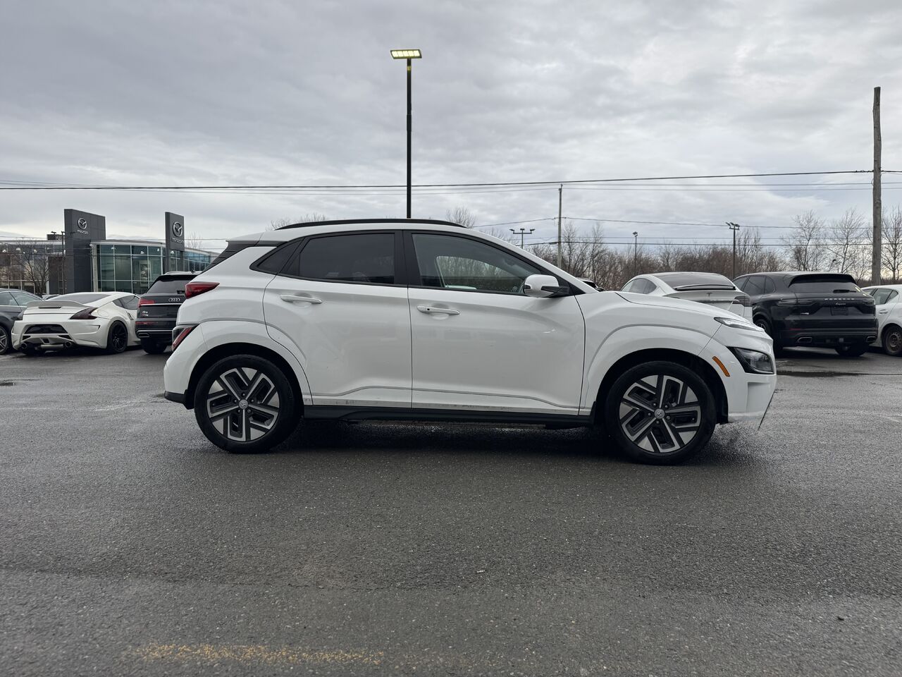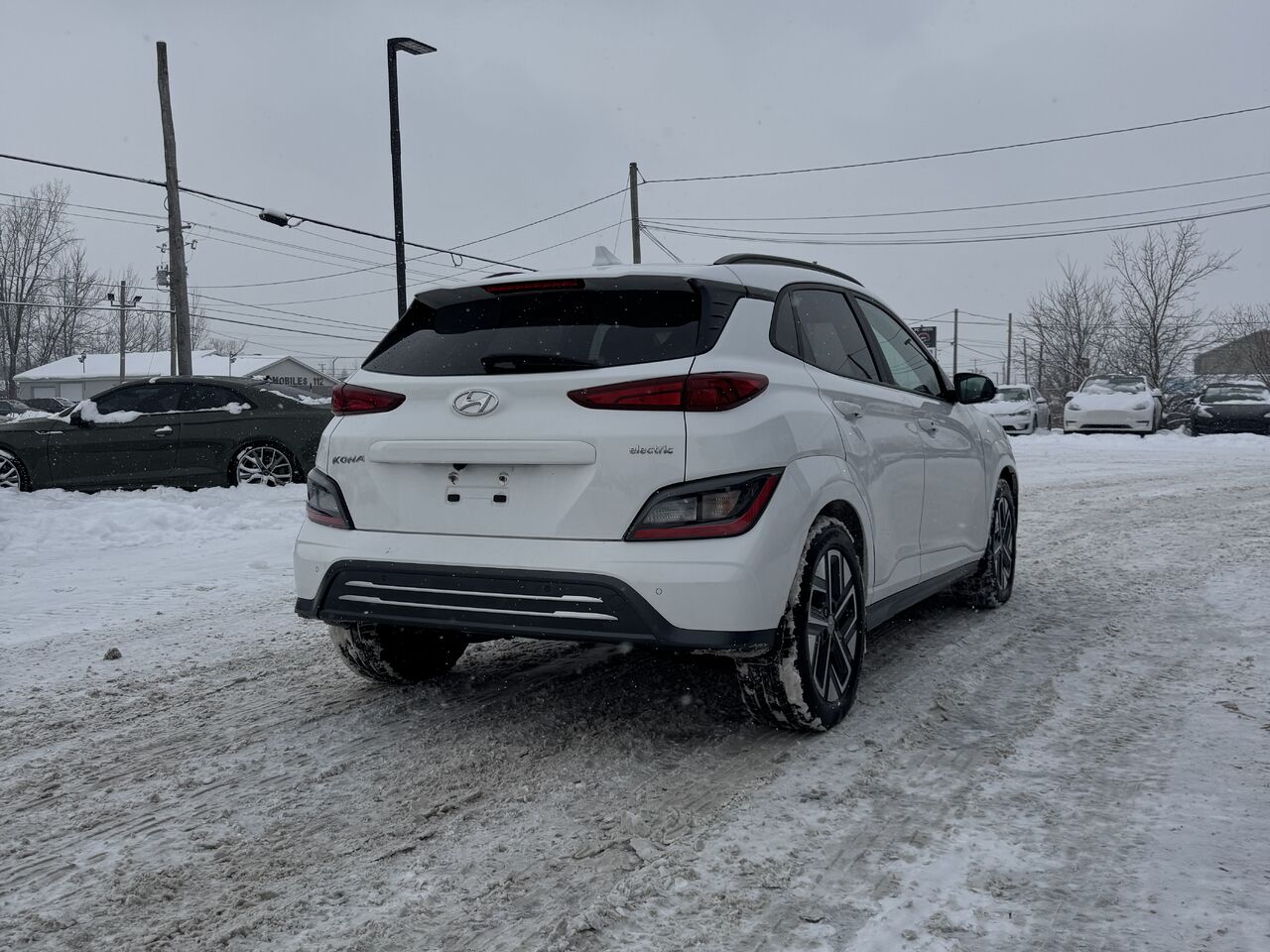 Superb 2023 Hyundai Kona with 43,300 km on the odometer. The vehicle is in excellent condition and has been inspected by our certified mechanics. The electric Kona is fully equipped: a beautiful infotainment touchscreen, radio, Bluetooth connectivity, GPS navigation, Apple CarPlay/Android Auto, rearview camera, brake assist, blind-spot detector, parking line detector, multi-zone climate control, heated seats and steering wheel, storage space, USB-C port, 12V outlet, cruise control, voice control, power group, and much more.