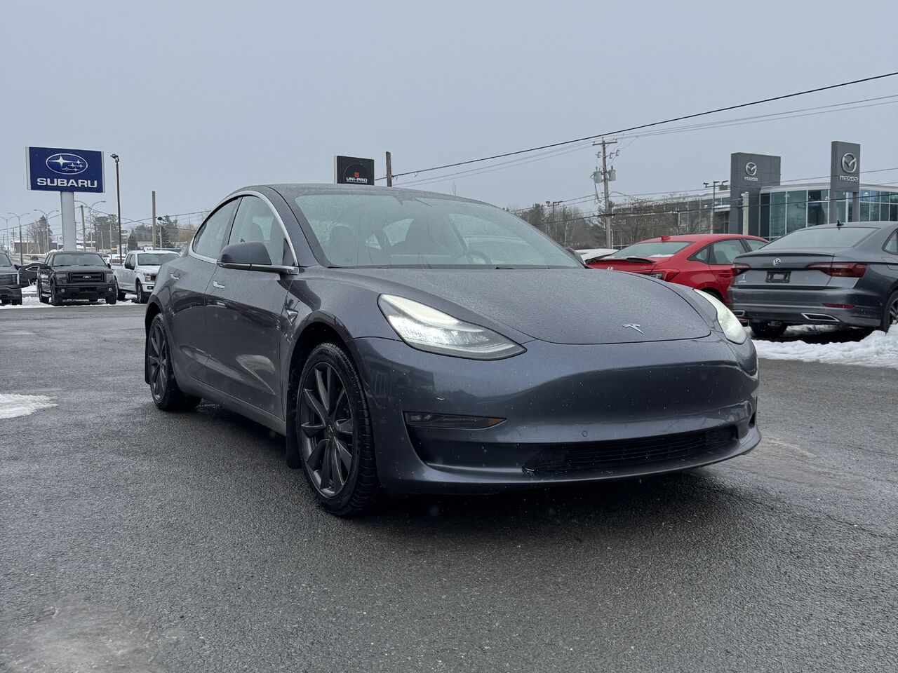 Superb 2020 Tesla Model 3 Long Range with 163,900km on the odometer. The vehicle is in excellent condition and has been inspected by our certified mechanics. The Model 3 is fully equipped with a beautiful large infotainment touchscreen, radio, phone connectivity, GPS navigation, 360 camera, parking lane assist, blind-spot monitor, voice control, cruise control, wireless charging, storage space, panoramic roof, heated seats, multi-zone climate control, power group, and much more.