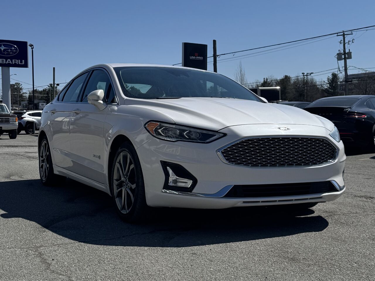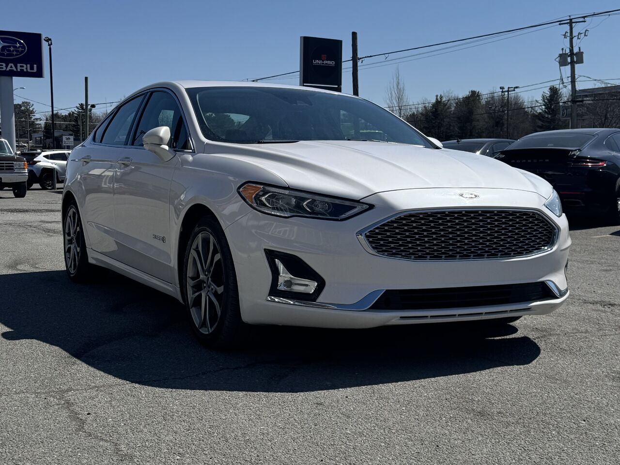 Superb 2019 Ford Fusion Hybrid with 142,500 km on the odometer. The vehicle is in excellent condition and has been inspected by our certified mechanics. The Fusion is equipped with: touchscreen infotainment system, radio, Bluetooth connectivity, GPS navigation, dual-zone climate control, heated seats, sunroof, USB port, 12V outlet, storage space, voice control, cruise control, CD player, power package, and much more.