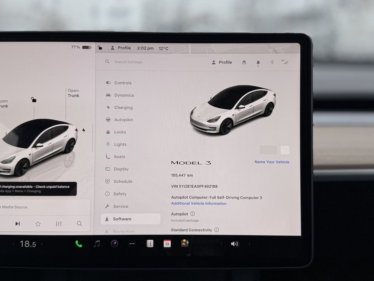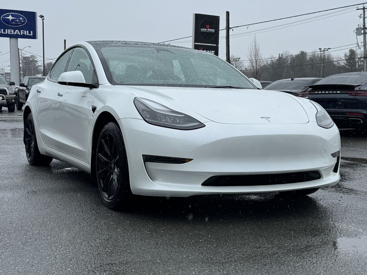 Magnifique Tesla Model 3 2023 avec 155,400km au compteur. Le véhicule n'a jamais été accidenté en plus d'être inspecté par nos mécaniciens certifiés. Le Model 3 est entièrement équipé; belle et grande écran tactile dinfodivertissement, radio, connectivité téléphonique, navigateur GPS, climatisation multizone, sièges chauffants avant/arrière, volant chauffant, grand toit panoramique, chargeur par induction, détecteur d'angle mort et de ligne de stationnement, contrôle vocal, régulateur de vitesse, assistance aux freins, espace de rangement, groupe électrique et beaucoup plus.