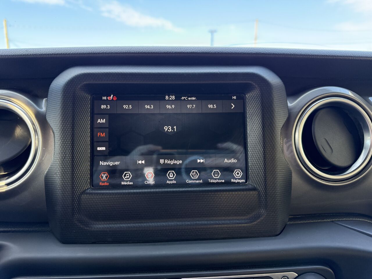 radio avec recherche et balayage, montre, volume asservi à la vitesse, prise d'entrée audio auxiliaire, commandes au volant, commandes vocales, système de radiocommunication de données et commande de mémoire externe uconnect