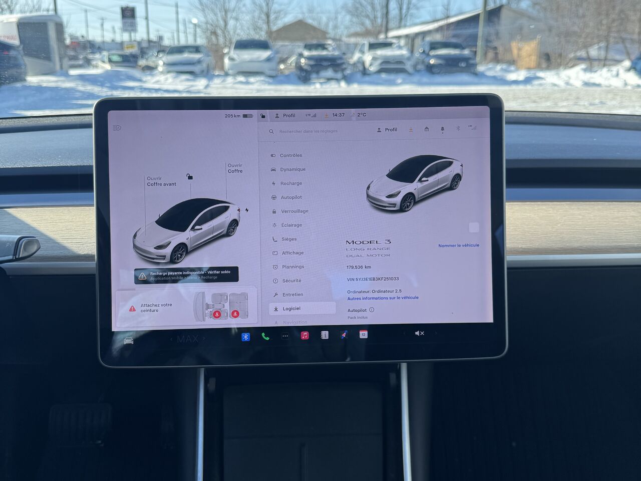 Magnifique Tesla Model 3 2019 avec 179,500km au compteur. Le véhicule n'a jamais été accidenté en plus d'être inspecté par nos mécaniciens certifiés. La Model 3 est entièrement équipé; belle et grande écran tactile dinfodivertissement, radio, connectivité téléphonique, caméra 360, contrôle vocal, régulateur de vitesse, assistance aux freins, détecteur d'angle mort, détecteur de ligne de stationnement, navigateur GPS, chargeur par induction, prise usb-c, prise 12v, espace de rangement, grand toit panoramique, climatisation multizone, groupe électrique et beaucoup plus.